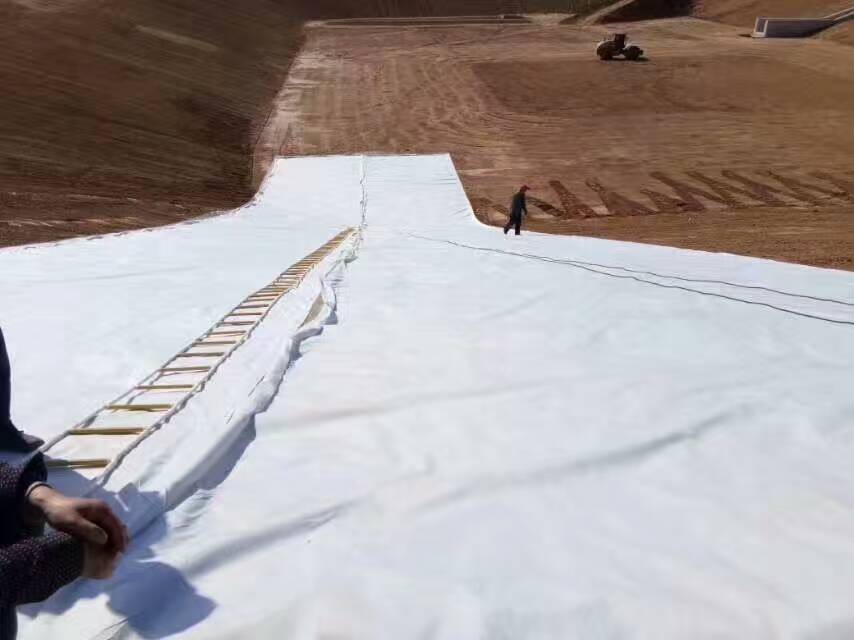 施工步驟.應(yīng)從底部向高位延伸,不要拉得太緊,應(yīng)留有1.50%的余幅,以備局部下沉拉伸。考慮到本工程的實(shí)際情況,邊坡采取從上到下的鋪設(shè)順序;